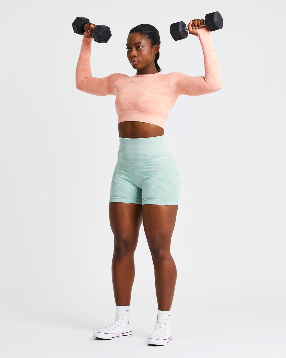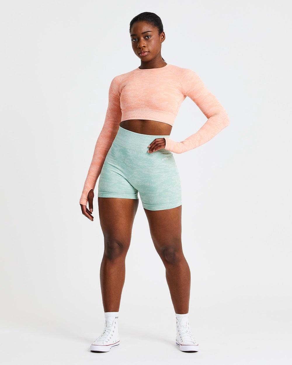 Smash your next workout and move with confidence with our Camo Long Sleeve Crop Top. Designed using a silky soft nylon, polyester and elastane blend, this workout top is perfect for keeping you cool during each of your workouts. Complete with a flattering midriff crop fit and long sleeves with thumbholes for added coverage and support, take your workouts to above and beyond. Pair with our Camo Leggings or Shorts for your new favourite gym fit.