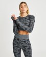 Smash your next workout and move with confidence with our Camo Long Sleeve Crop Top. Designed using a silky soft nylon, polyester and elastane blend, this workout top is perfect for keeping you cool during each of your workouts. Complete with a flattering midriff crop fit and long sleeves with thumbholes for added coverage and support, take your workouts to above and beyond. Pair with our Camo Leggings or Shorts for your new favourite gym fit.