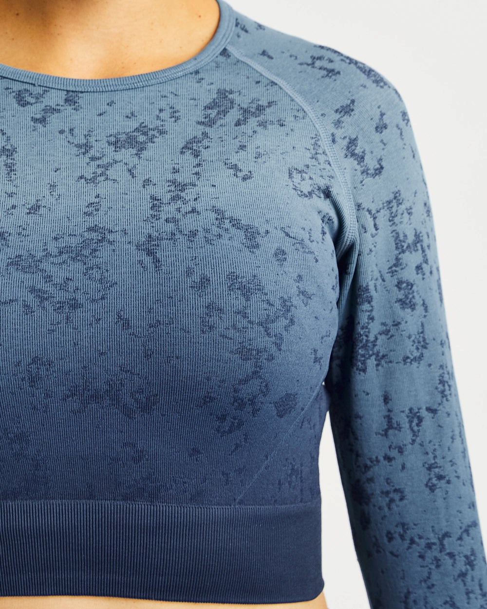 Get ready to lift in style in our Flare Seamless Long Sleeve Crop Top. Featuring a statement ombré pattern in our signature seamless fabric, designed to keep you cool and dry, you can lift with confidence and in comfort even as you sweat. Form-flattering contour detailing and long sleeves with thumbholes are added for an all-round powerful aesthetic. Time to step up and find your Flare.