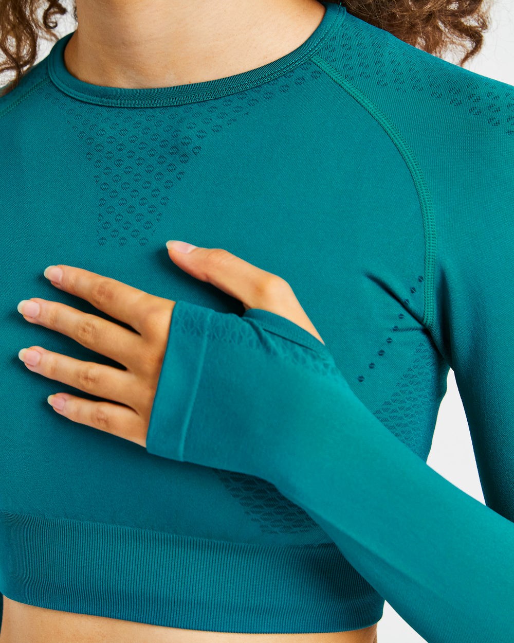 Engineered for your best hybrid performance yet, our Ignite Seamless Long Sleeve Crop Top works hard to keep you cool as your workouts heat up. The visible ventilation holes are mapped perfectly to contour your figure and maximise breathability, so that no matter how hard you sweat, you can be confident your activewear will stand up to the test. Elevated with a super soft sweat-wicking fabric, a flattering midriff crop fit and thumbholes for added support, get ready to sweat hard and HIIT harder.