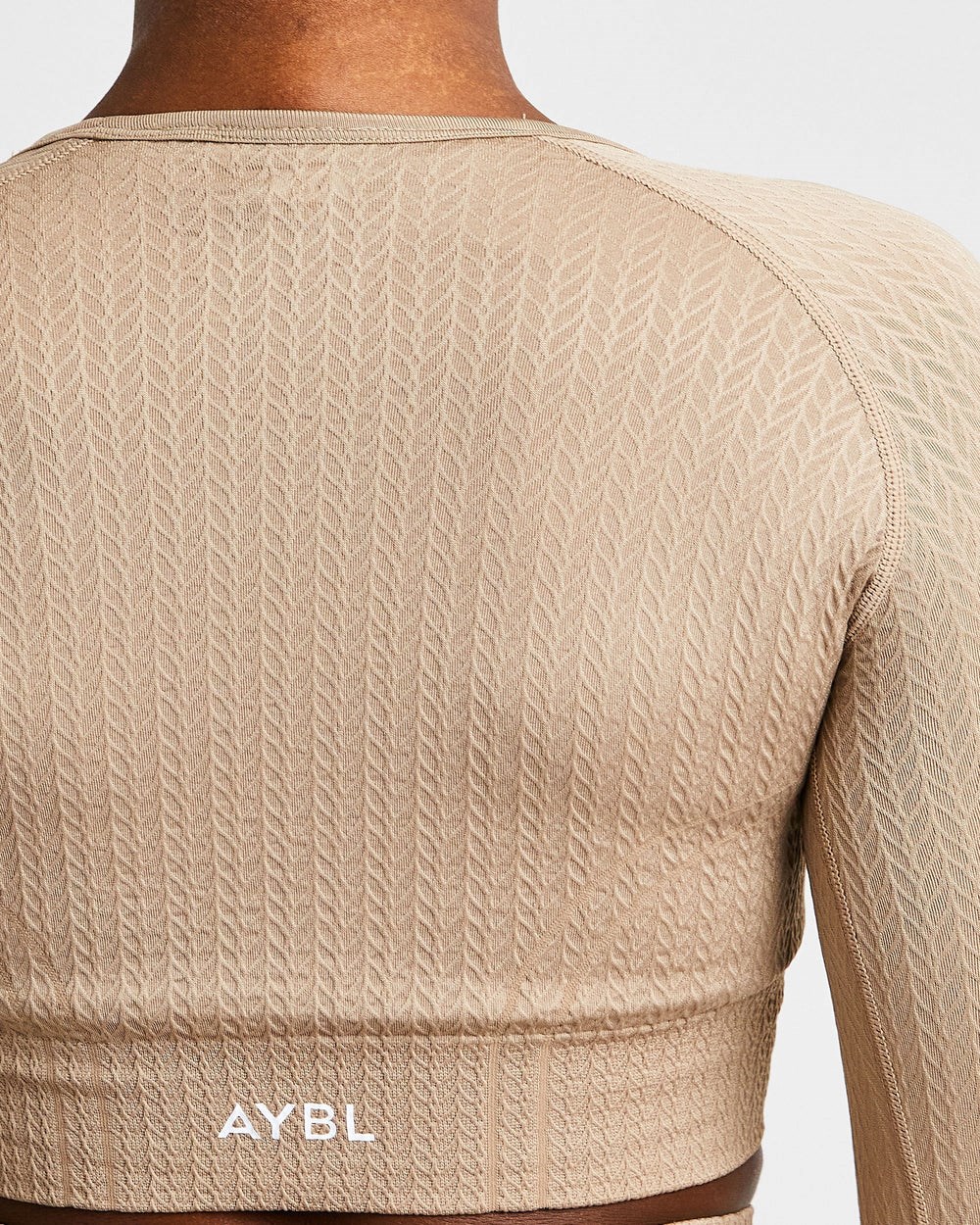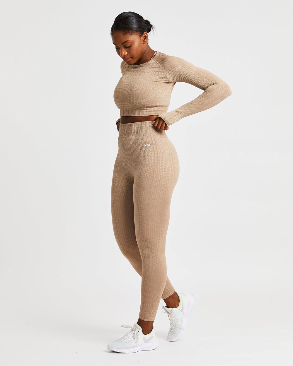 For comfort that inspires confidence, treat yourself to our Luxe Seamless Long Sleeve Crop Top. Designed with a luxurious soft seamless fabric which features our bespoke cable knit pattern, this textured crop top will take you through this season and into the next with ease. The subtle linear contour lines and flattering midriff crop fit are tailored to complement your form, while the thumbholes provide added coverage and support for endless luxe.