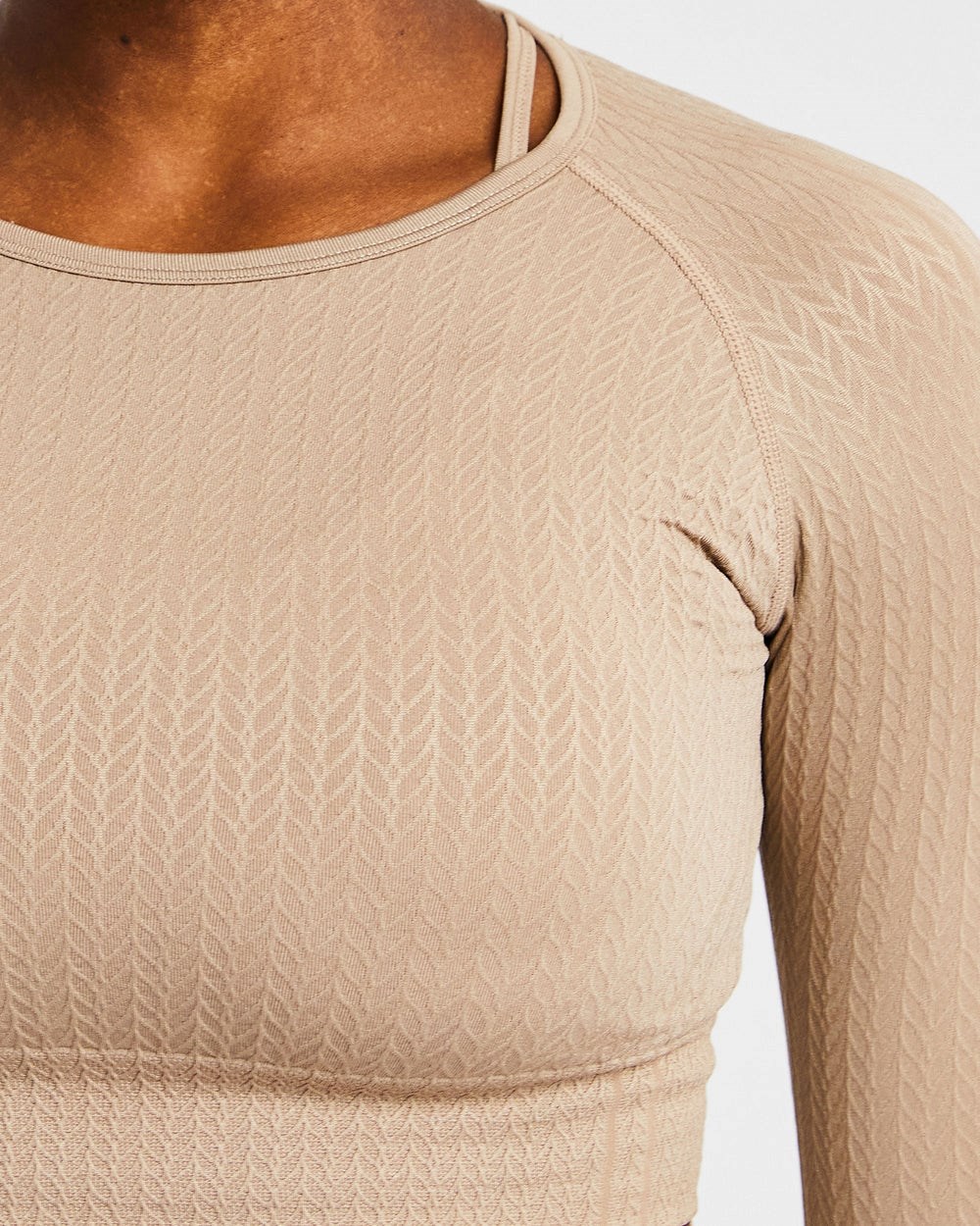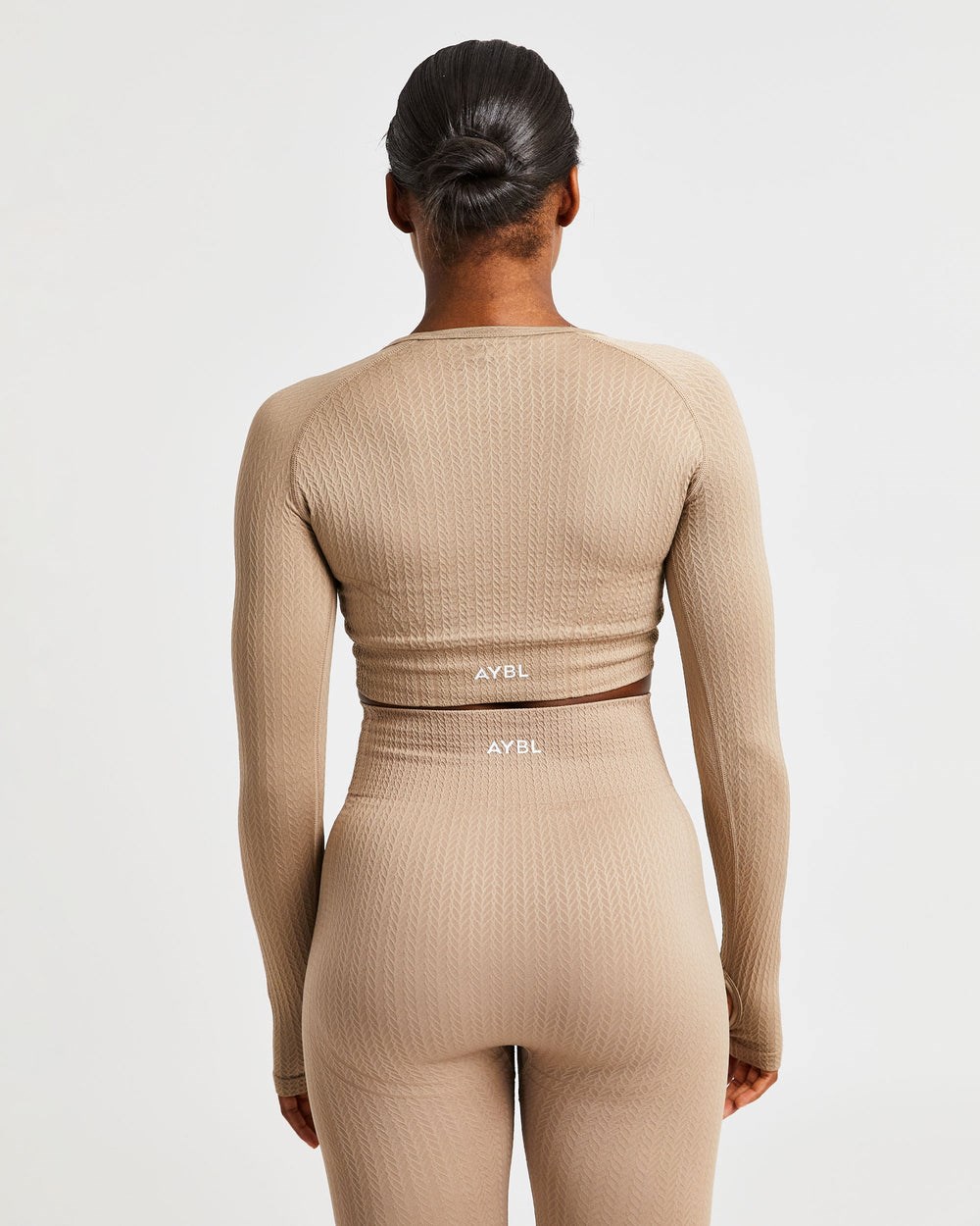 For comfort that inspires confidence, treat yourself to our Luxe Seamless Long Sleeve Crop Top. Designed with a luxurious soft seamless fabric which features our bespoke cable knit pattern, this textured crop top will take you through this season and into the next with ease. The subtle linear contour lines and flattering midriff crop fit are tailored to complement your form, while the thumbholes provide added coverage and support for endless luxe.