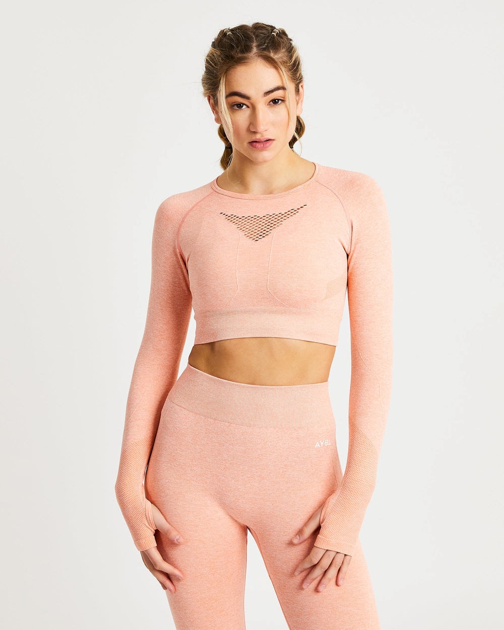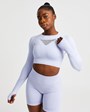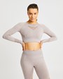 Level up your fitness with our Motion Long Sleeve Crop Top. A staple for every gym lover, our seamless workout top is made from a super soft and stretchy nylon, polyester and elastane blend for a fit that promises both style and functionality. Complete with melange contour detailing to sculpt and define your body, as well as intricate cut out detailing on the front and back, this long sleeve top offers incredible breathability, so you can focus on smashing your goals. Look as good as you feel when you pair with our Motion Leggings or Shorts.