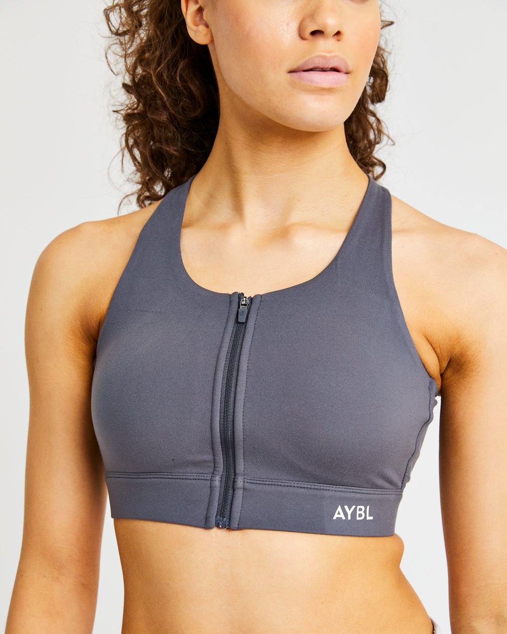 AYBL Sportive Zip Up Sports Bra - Charcoal | AYBL CZ